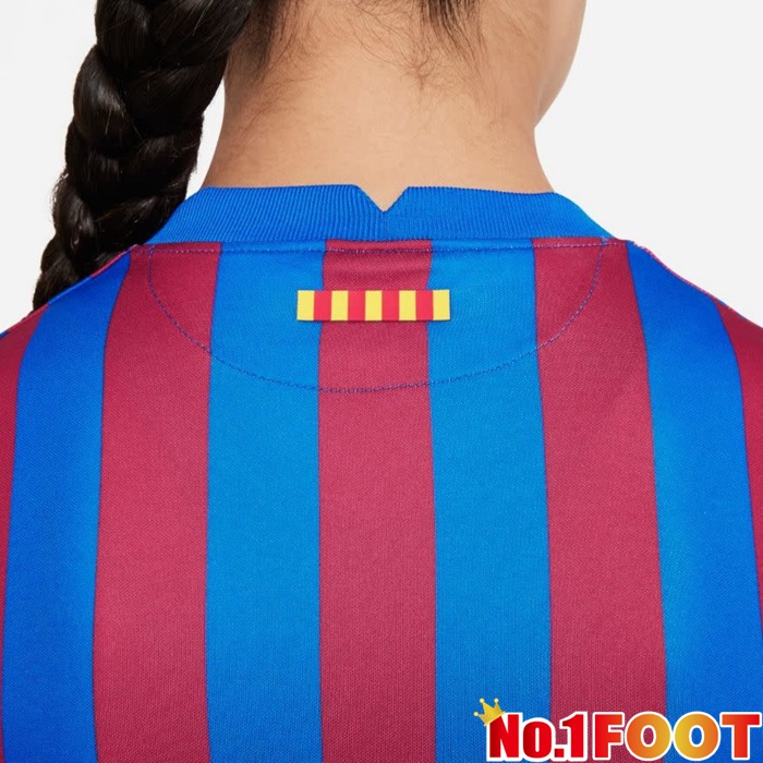 It's the badge recognized around the world. The 2021/22 Barcelona Home Jersey combines elements of the famous crest: the St. George's Cross, the stripes from the Catalan flag, and, of course, the home colors blue and red. It's an in-your-face look that reflects everything that the crest stands for : pride to be a part of the club, the city, and the region.