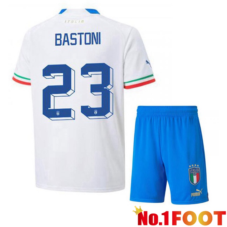 Italy (Bastoni 23) Kids Soccer Jerseys Away White 2022-2023